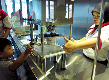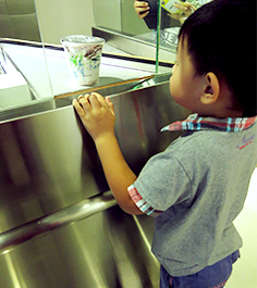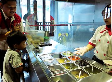 Little boy picking his preferred condiments to go into his Limited Edition Chef Cup
