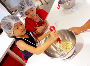Boys devouring their freshly made Mamee Monster Snack even before they head home.