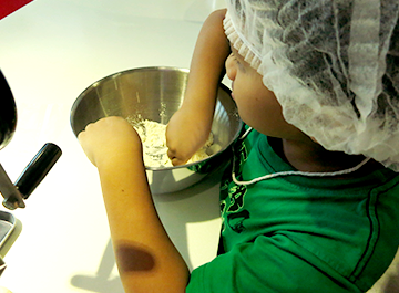 Step 1 - Mixing the dough ala 'old school' with their hands.