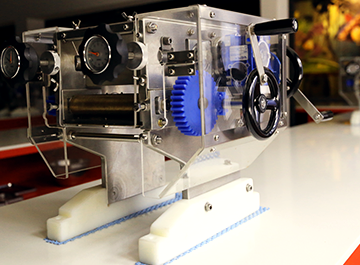 Step 4 - Putting the dough sheet through the noodle slitter after 20 mins of resting time