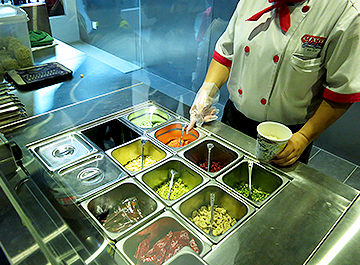 Little boy picking his preferred condiments to go into his Limited Edition Chef Cup
