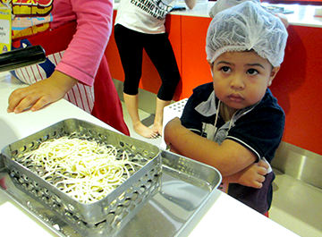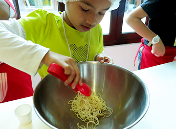 Boys devouring their freshly made Mamee Monster Snack even before they head home.