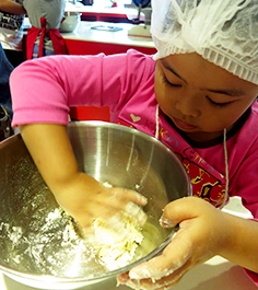Step 1 - Mixing the dough ala 'old school' with their hands.